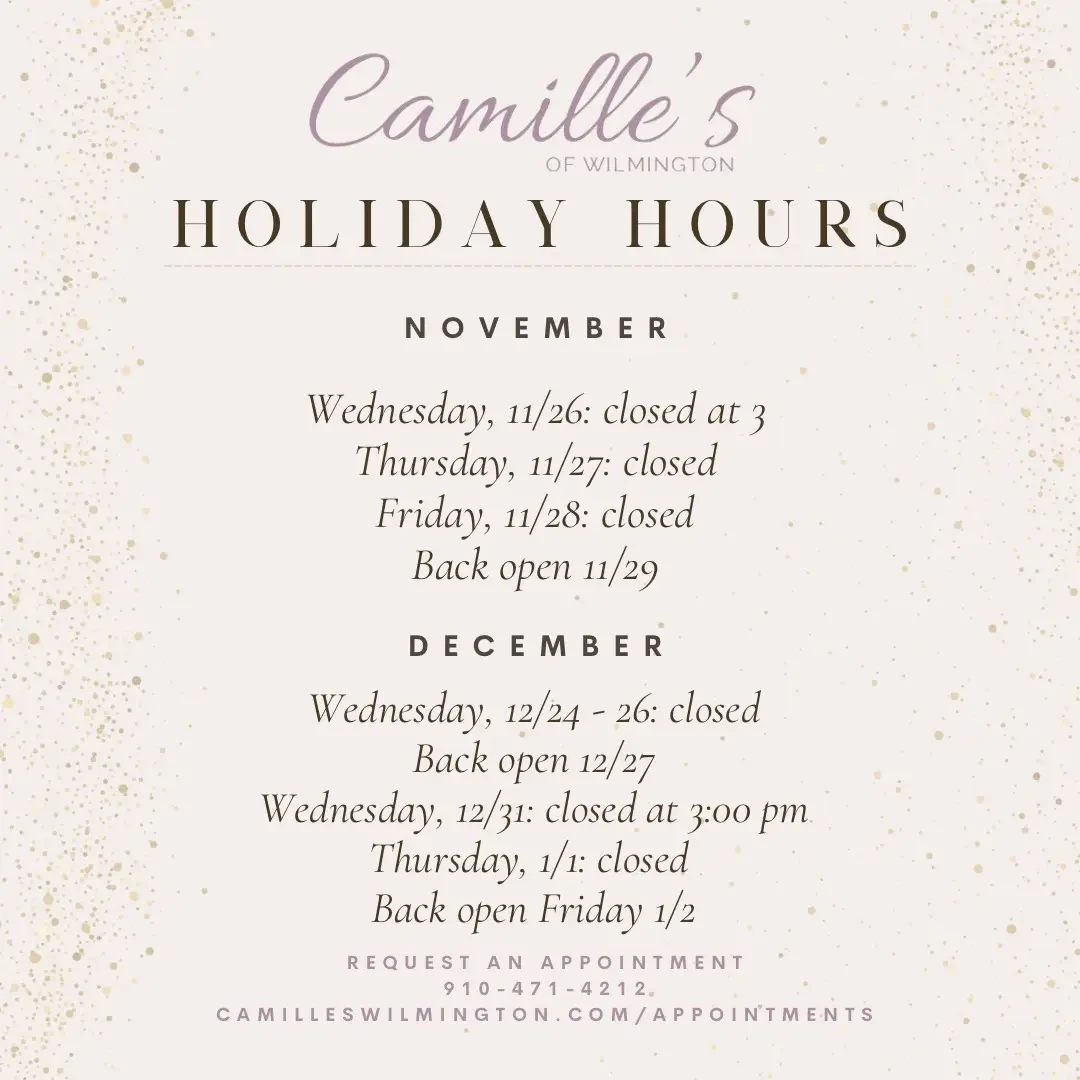 These adjustments help our team give you the time, care, and personalized service that define every Camille’s appointment.