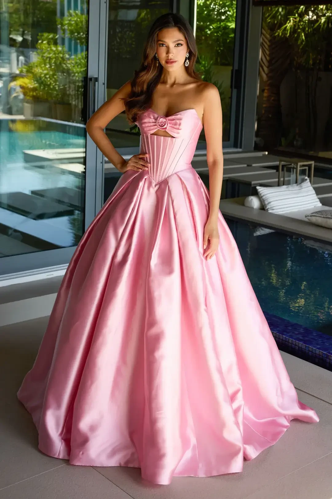 Strapless silhouettes remain a classic for prom 2026, offering a clean neckline and a flattering, structured fit.