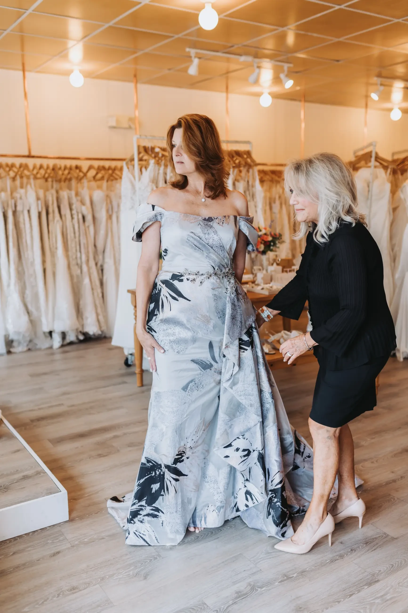 To provide each guest with dedicated time and personalized attention, all mom’s dress appointments are by appointment only. This allows your stylist to guide you through our selection, help you try on different styles, and offer expert advice tailored to your body type, wedding theme, and personal style.